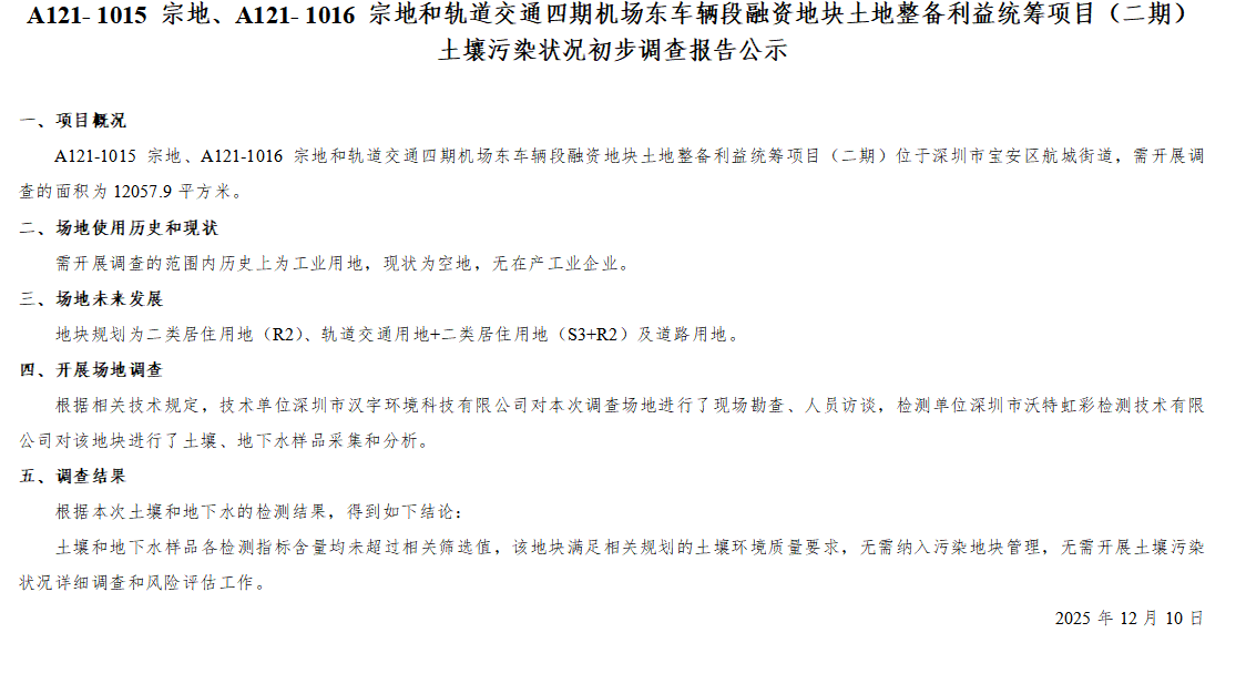 土壤污染状况初步调查报告公示
