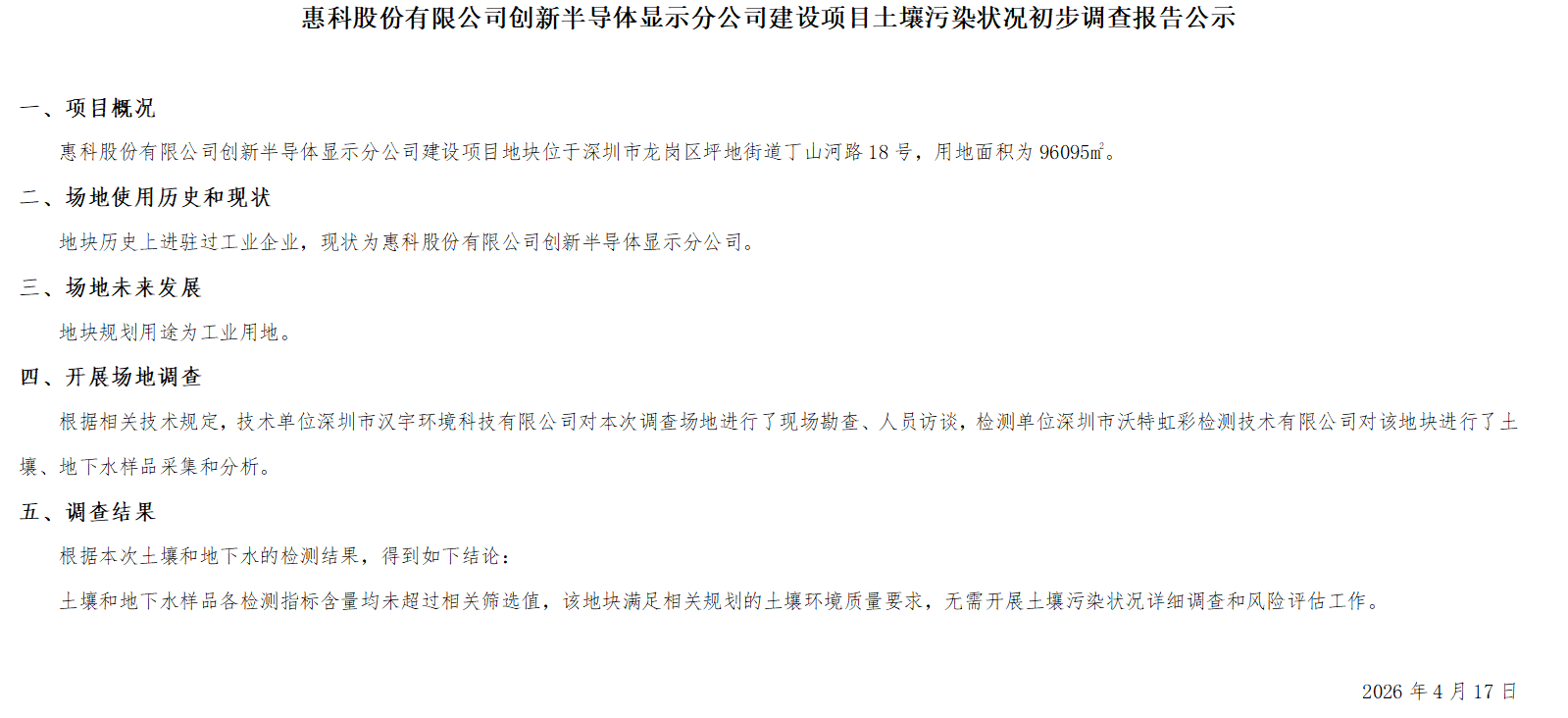 土壤污染状况初步调查报告公示